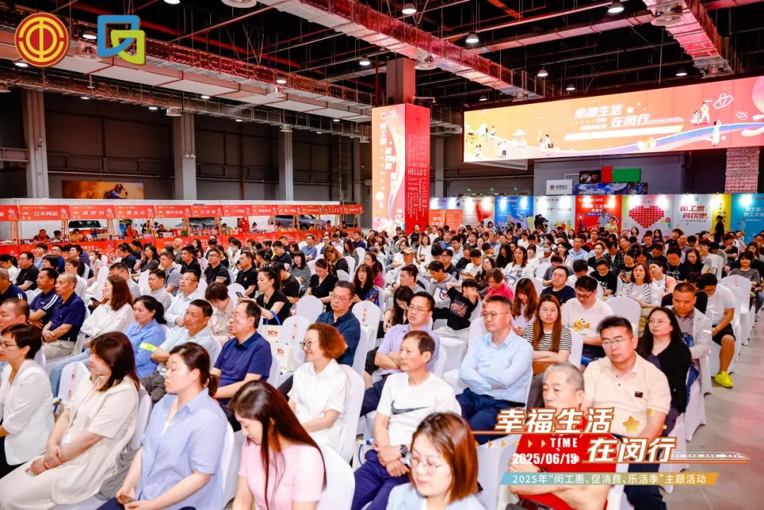为全力打造闵行工会新时代职工全生命周期服务站,积极创造职工高品质生活环境,助力激发和提振消费新活力,聚焦住、医、学、育、友、享等多元需求,进一步提升职工生活品质,切实增强全区职工群众的获得感、幸福感、归属感。6月15日下午,闵行区总工会举办“幸福生活在闵行”—2025年“闵工惠、促消费、乐活季”主题活动,上海市总工会党组成员、副主席丁巍,闵行区人大常委会副主任、总工会主席杨其景,区人民政府副区长张贤,区总工会党组书记、副主席岳崇等领导出席活动。活动由上海市总工会指导,闵行区总工会主办。来自各街镇、莘庄工业区、委局的工会干部,职工代表300余人参加了活动。