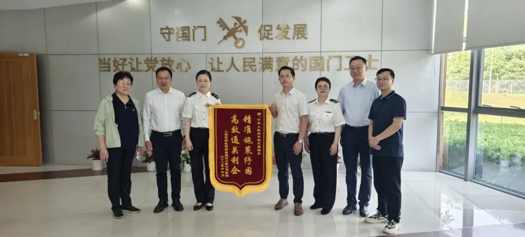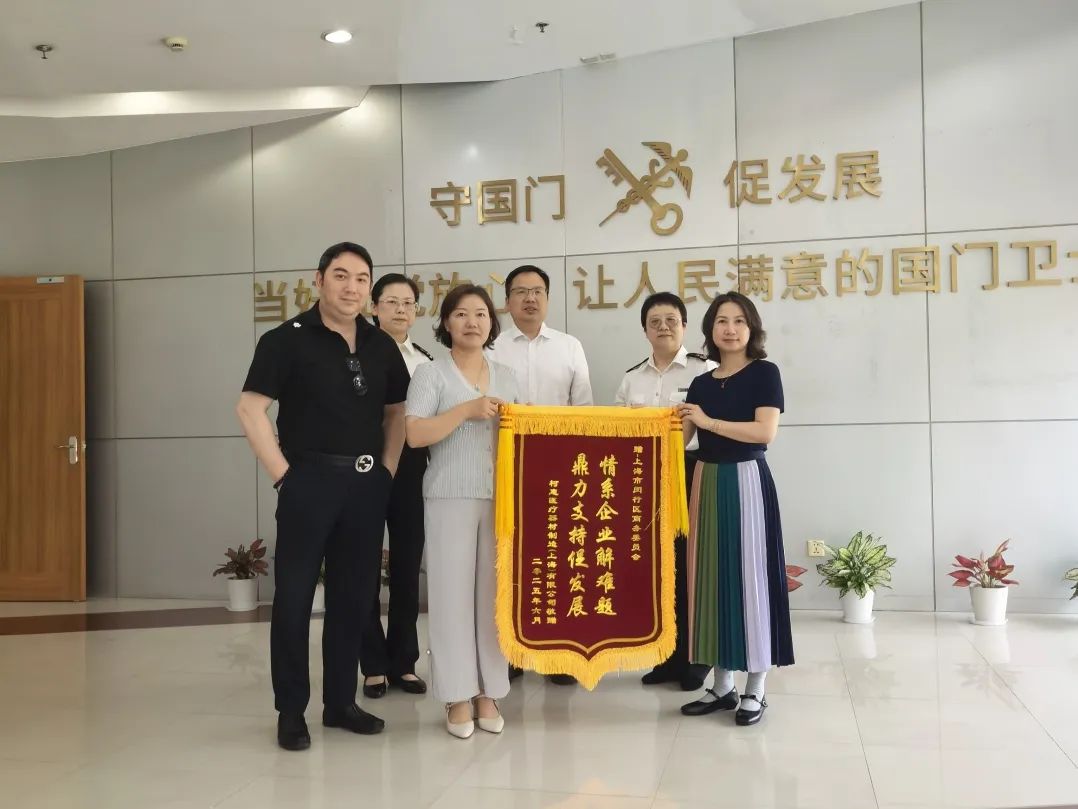 调研现场,柯惠医疗器材、健耕医药科技两家企业向区商务委和龙吴海关送来锦旗。