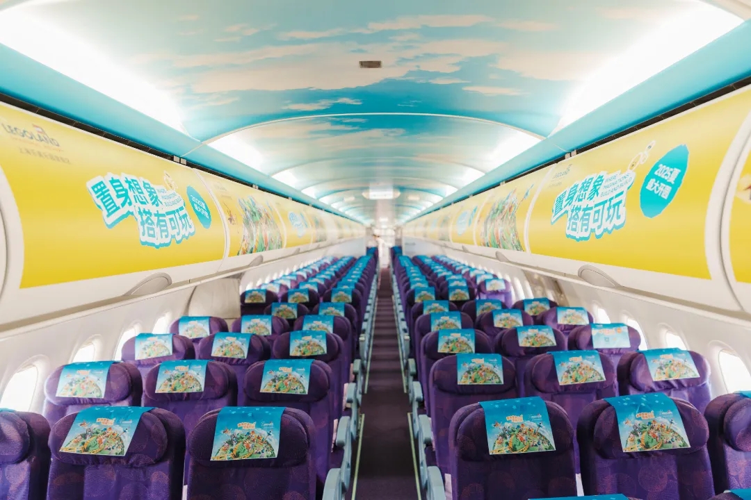 步入客舱,机舱内装点着乐高乐园标志性元素,一场“从云端到乐园”的沉浸体验即刻启程——“蓝天”下,飞龙过山车冲上云霄,乐高大飞车划过巨型乐高人仔“搭搭”的手掌,最特别的彩蛋藏在舷窗,每一位旅客望向窗外,都能解锁一个独特的乐高乐园体验。