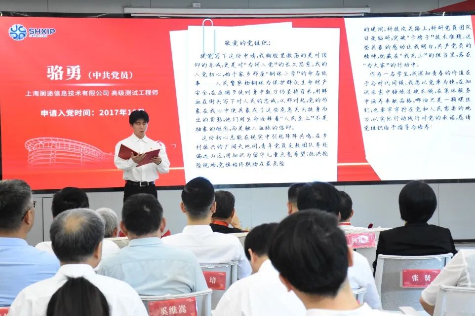 闵行区五星党组织上海阑途信息技术有限公司党总支党员骆勇(造血干细胞捐献者)与四位来自不同行业的预备党员、发展对象、入党积极分子和入党申请人重温入党申请书,铭记初心之诺。