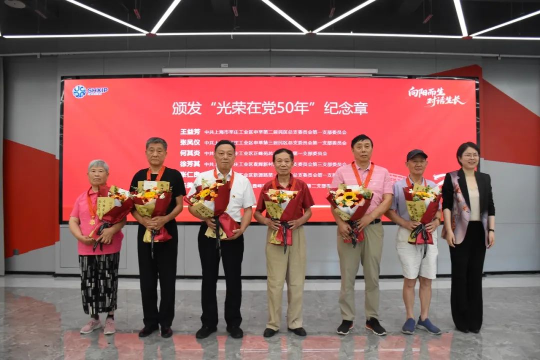 座谈会为6名园区老党员代表颁发“光荣在党50年"纪念章,并集中表彰了2025年闵行区五星党(总)支部、闵行区“两岗一区”命名对象及“新时代先锋堡垒”“新时代好班长”等获奖党组织及个人。