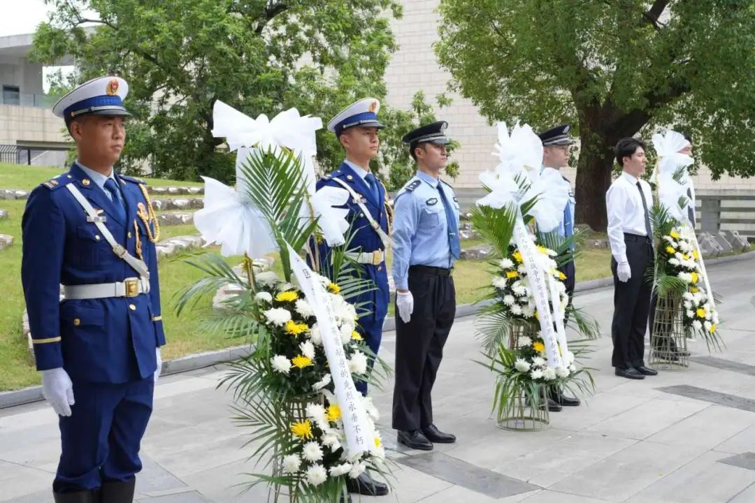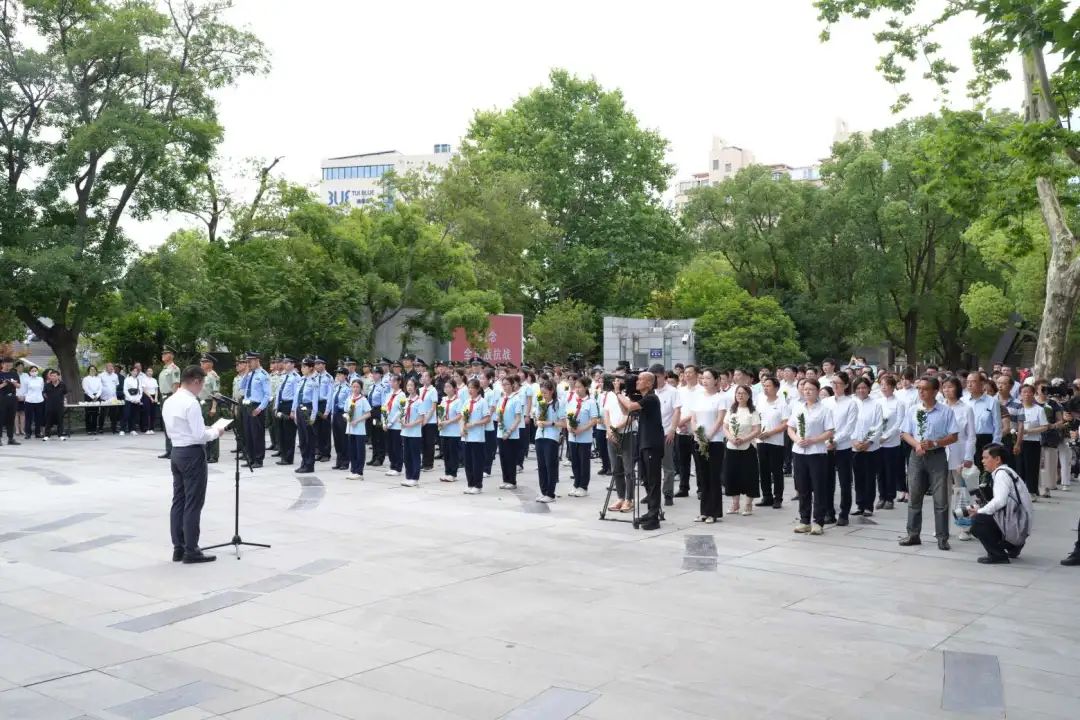 上午10时,纪念全民族抗战爆发88周年仪式正式开始,上海淞沪抗战纪念馆前的胜利广场上气氛庄严肃穆,相关单位党员干部、市民、学生等社会各界代表150人齐聚一堂,共同缅怀那段波澜壮阔的历史。仪式伊始,全场人员肃立,升国旗、奏唱国歌,激昂的国歌声回荡在广场上空,激发着每个人的爱国情怀。随后,举行了默哀仪式,人们低头静默,向在抗日战争中英勇牺牲的英烈们表达深切哀思。接着,向抗战英烈敬献花篮,一束束鲜花承载着后人对先烈的崇敬与感恩。最后,社会各界人士依次向无名英雄纪念碑敬献鲜花,以此铭记那些无名英雄的奉献与牺牲。
