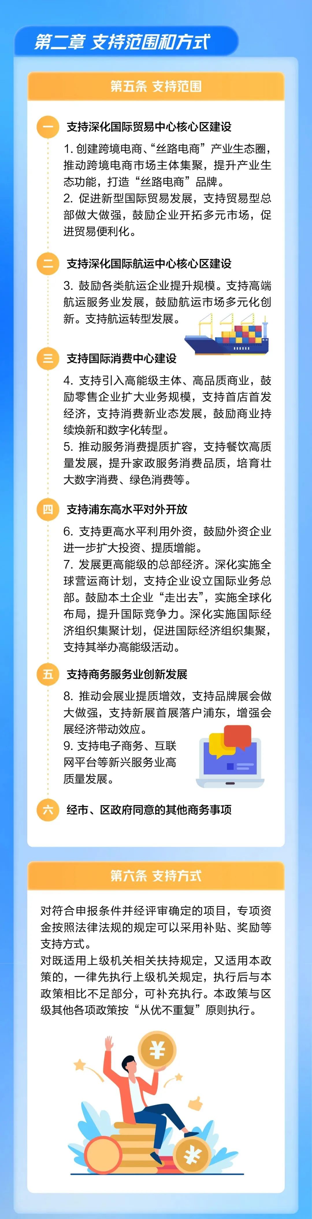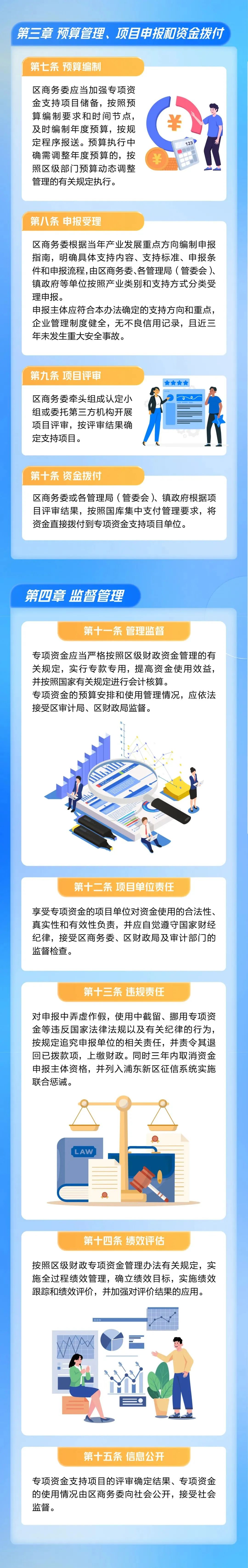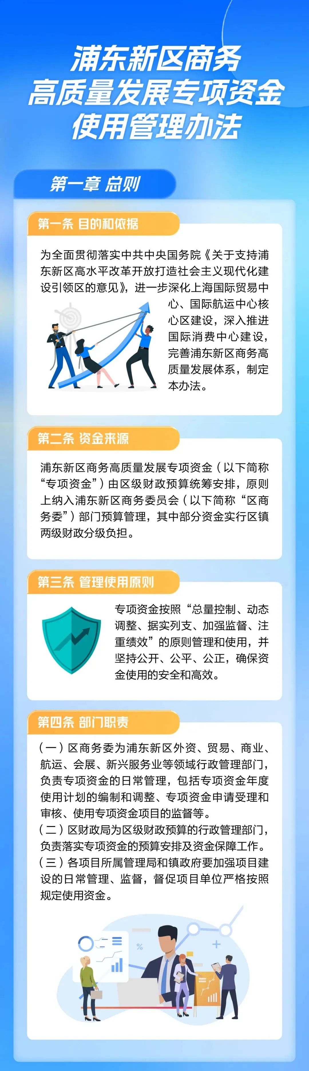 为全面贯彻落实《中共中央国务院关于支持浦东新区高水平改革开放打造社会主义现代化建设引领区的意见》,进一步深化上海国际贸易中心、国际航运中心核心区建设,深入推进国际消费中心建设,完善浦东新区商务高质量发展体系,区商务委制定了《浦东新区商务高质量发展专项资金使用管理办法》,来看详情↓