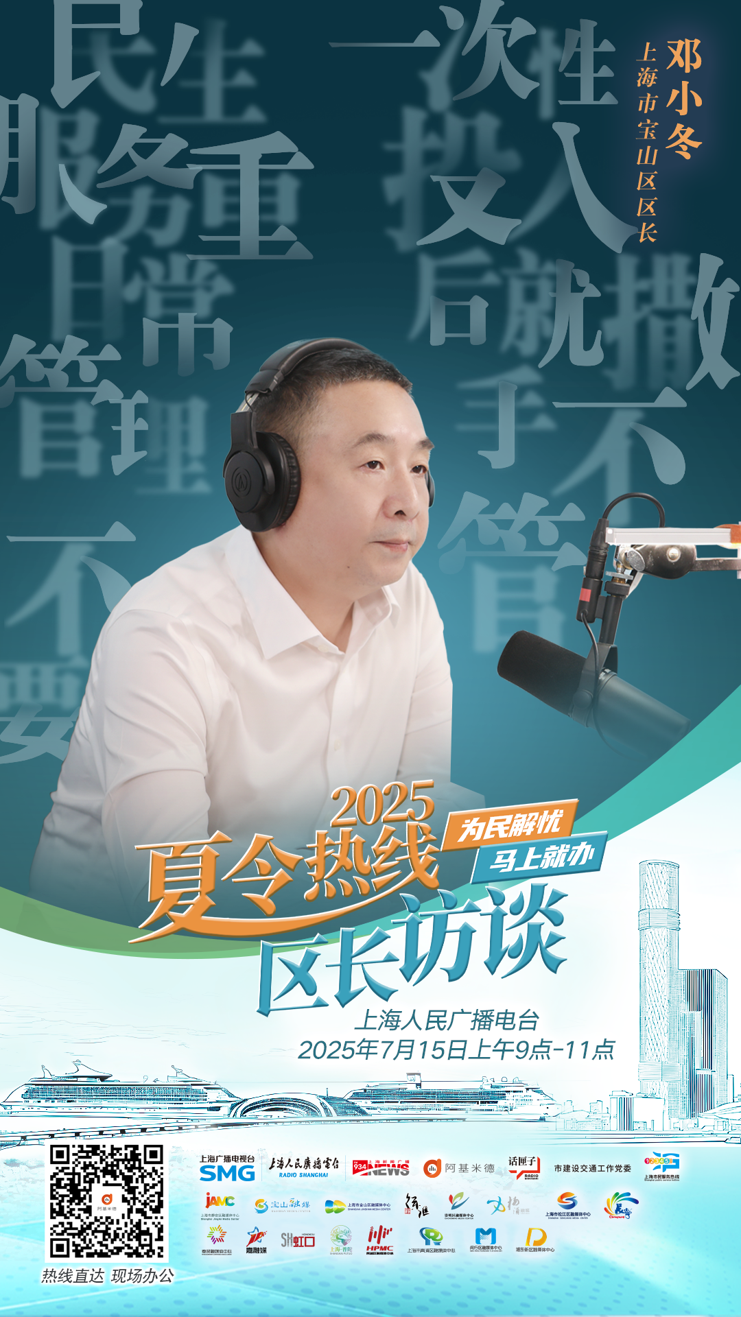 7月15日上午9点,宝山区区长邓小冬走进上海人民广播电台“2025夏令热线·区长访谈”节目。