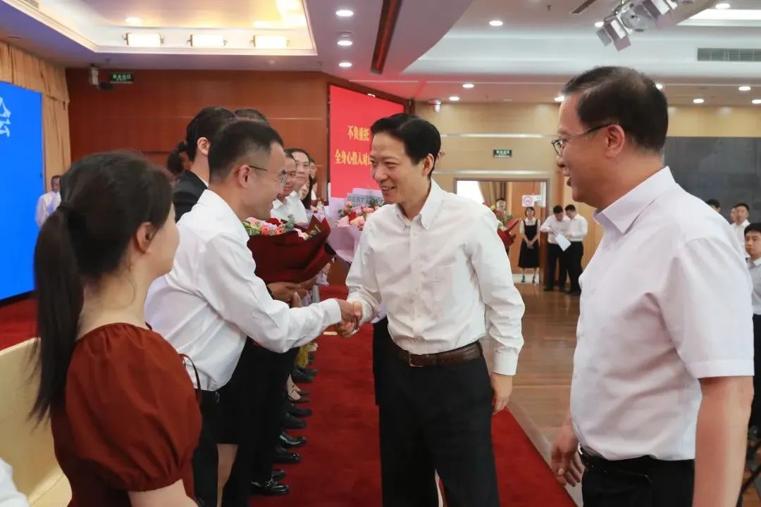 7月17日,闵行区第十三批援滇干部人才行前教育动员会在区机关会议中心举行。区委书记陆方舟、区人大常委会主任王观宝、区政协主席祝学军、区委副书记唐劲松会见援滇干部人才,并向他们的家属表示慰问和感谢。