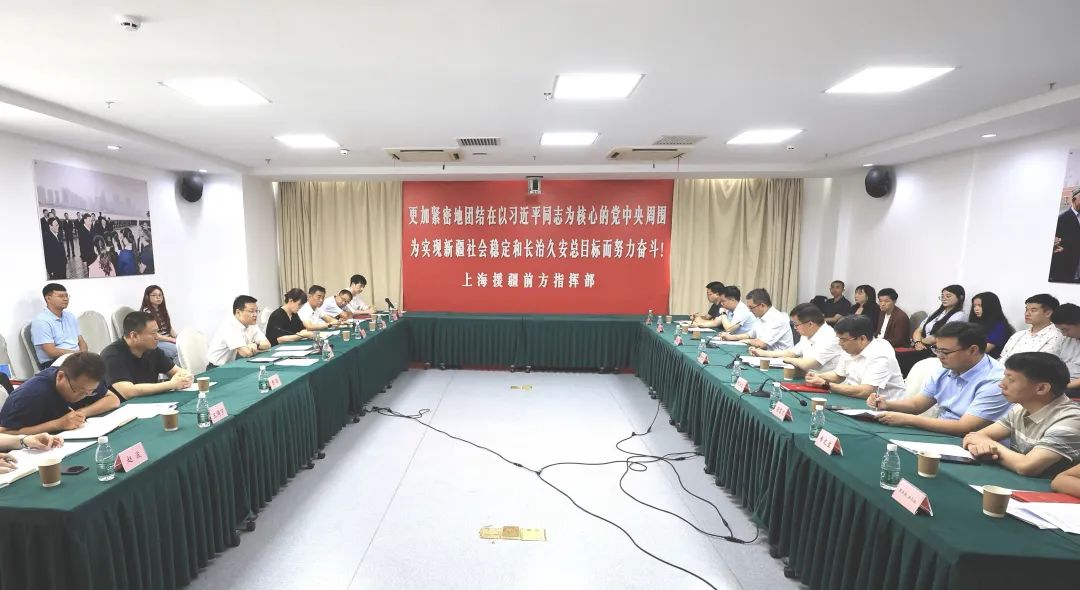 在新一轮对口支援新疆15周年之际,为完整准确全面贯彻新时代党的治疆方略,贯彻落实全国第十次对口支援新疆工作会议精神,深化沪喀两地(尤其是宝山叶城两地)宣传思想文化领域交流合作,7月24日,“沪喀同心·青春理享会”援疆15周年主题理论研讨座谈会在新疆喀什上海援疆前指举行,“沪喀青年宣讲联盟”同时成立。上海市对口支援新疆工作前方指挥部总指挥、上海市人民政府驻新疆办事处主任、中共喀什地委副书记孟庆源,中共宝山区委常委、宣传部部长胡宝国,中共喀什地委委员、地委宣传部部长窦雪梅等领导出席座谈并讲话。上海市、宝山区援疆干部代表,沪喀青年宣讲联盟专家、骨干成员、返乡大学生等参加会议。