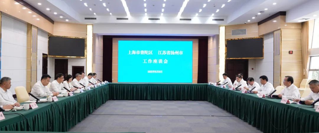 8月8日,江苏省扬州市党政代表团来普陀区考察调研,普陀区政府与扬州市政府签署关于协同推进沿沪宁产业创新带建设备忘录。区委书记胡广杰与扬州市委书记王进健一行围绕深化协同创新,共同推动沿沪宁产业创新带建设迈上新台阶进行座谈交流。