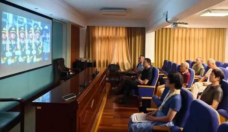 上午9点,宝山区军休一所的军休老干部同志们端坐在活动室的投影屏幕前,聚精会神地观看正在直播的纪念中国人民抗日战争暨世界反法西斯战争胜利80周年大会。阅兵式上震撼人心的场景,激发了军休干部们的共鸣,也让他们心潮澎湃。大家纷纷表示,要铭记历史,更要激励现在,在今后的工作和生活当中发扬抗战精神,把红色基因很好地传承下去。