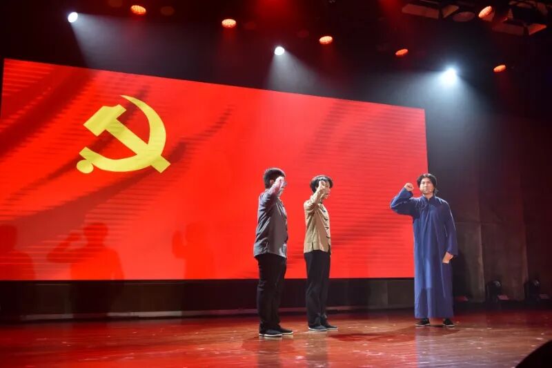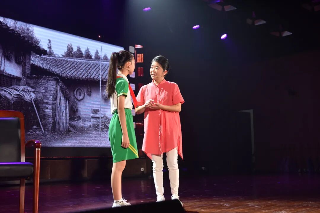 活动最后,舞台剧《淬·莘火》将现场气氛推向了高潮,革命烈士张德忠的女儿张超平受邀登台。她深情讲述了父亲年少时传递情报的惊险往事:“10岁的小孩揣着情报奔跑,被日军堵住时灵机一跃脱险……”。“革命夜校”场景中,陈正华老师以粉笔写下“國”字,向学生解释:“这框是河山,这戈是枪杆子,我们绝不能做亡国奴!”夜校学子们齐声高唱《毕业歌》:“同学们,大家起来,担负起天下的兴亡!”全场观众自发加入大合唱,歌声如洪流般冲破剧场穹顶。而后,“娘娘乡抗征军警米”“红色印记西河浜”等场景,让现场的观众们仿佛来到了过去的年代,跟随张复兴与张德忠共同抗争了军警米、宣誓了入党誓言......