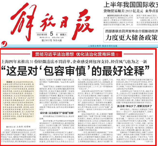 2023年8月5日《解放日报》头版专题报道