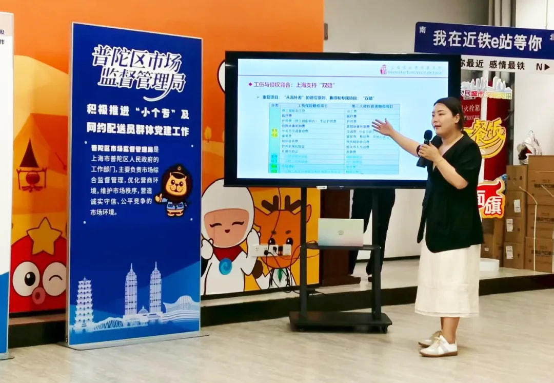 普法的触角,同样延伸到了城市新兴的“毛细血管”之中。今年7月,一场特殊的党建联建活动将区市场监管局的干部、行风监督员与“小个专”(小微企业、个体工商户、专业市场)及网约配送员群体紧密联系在一起。“饿了么”蓝骑士党员分享的微党课《微光成炬》,传递着新就业群体的责任与温情;律师带来的普法小课堂,则为这些奔走在城市中的劳动者送上了最贴身的法律知识。这不仅是一次党建活动,更是一次精准的普法实践,让法治关怀覆盖到每一个努力奋斗的个体。