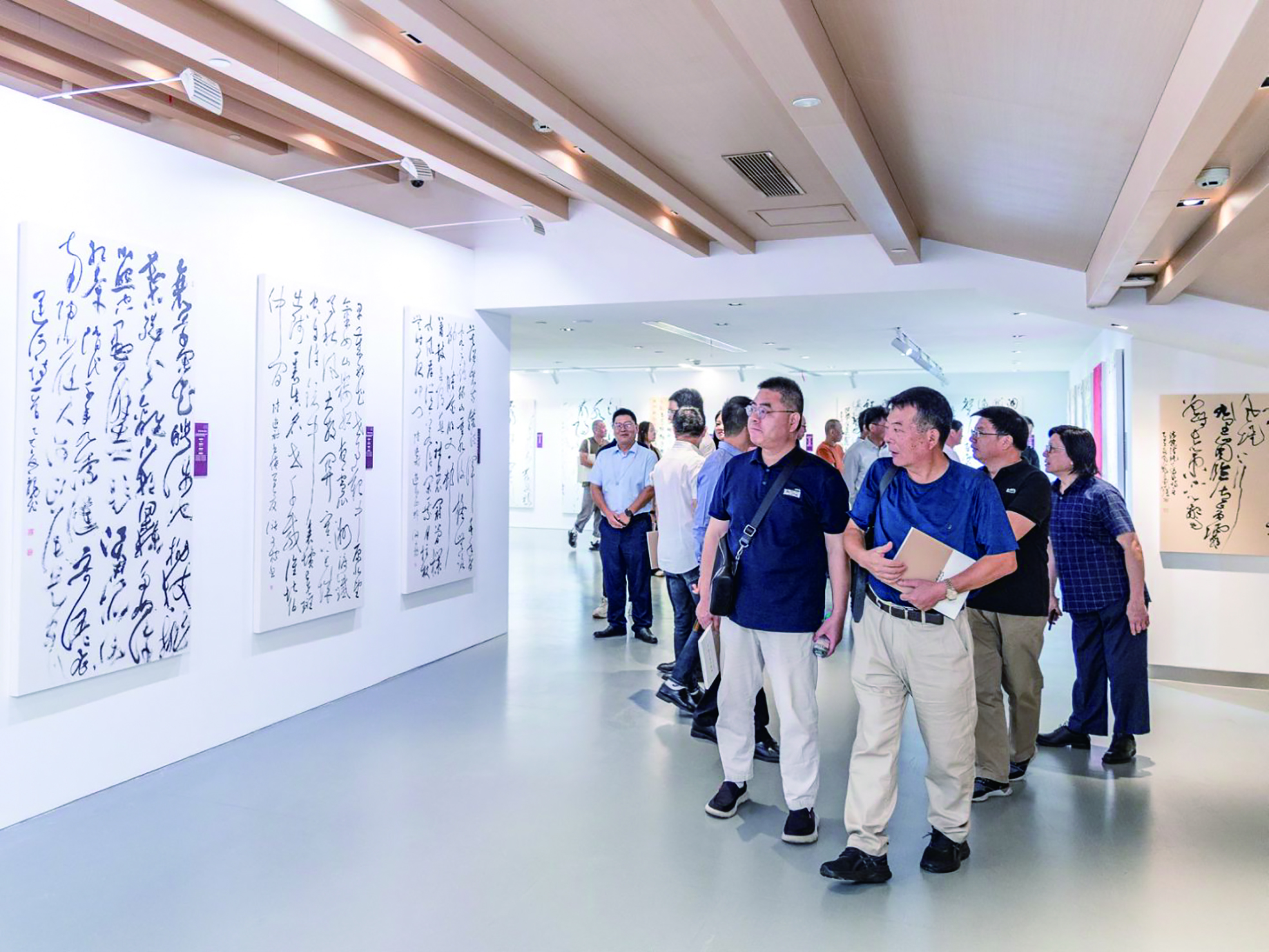 一幅幅草书作品悬挂于墙,笔锋或刚劲或婉转,尽显草书艺术纵逸奔放之美,吸引着观展者沉浸于这场运河文化与书法艺术交融的文化盛宴。