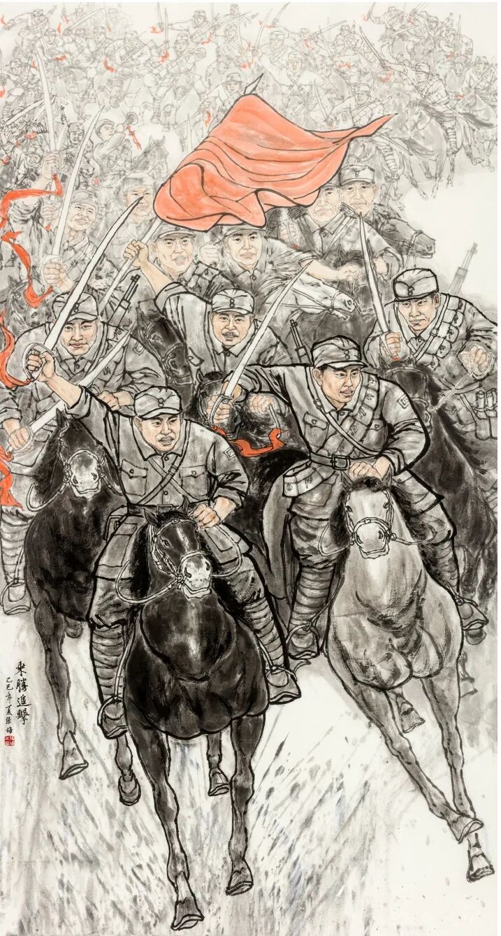 国画《乘胜追击》作者:张培