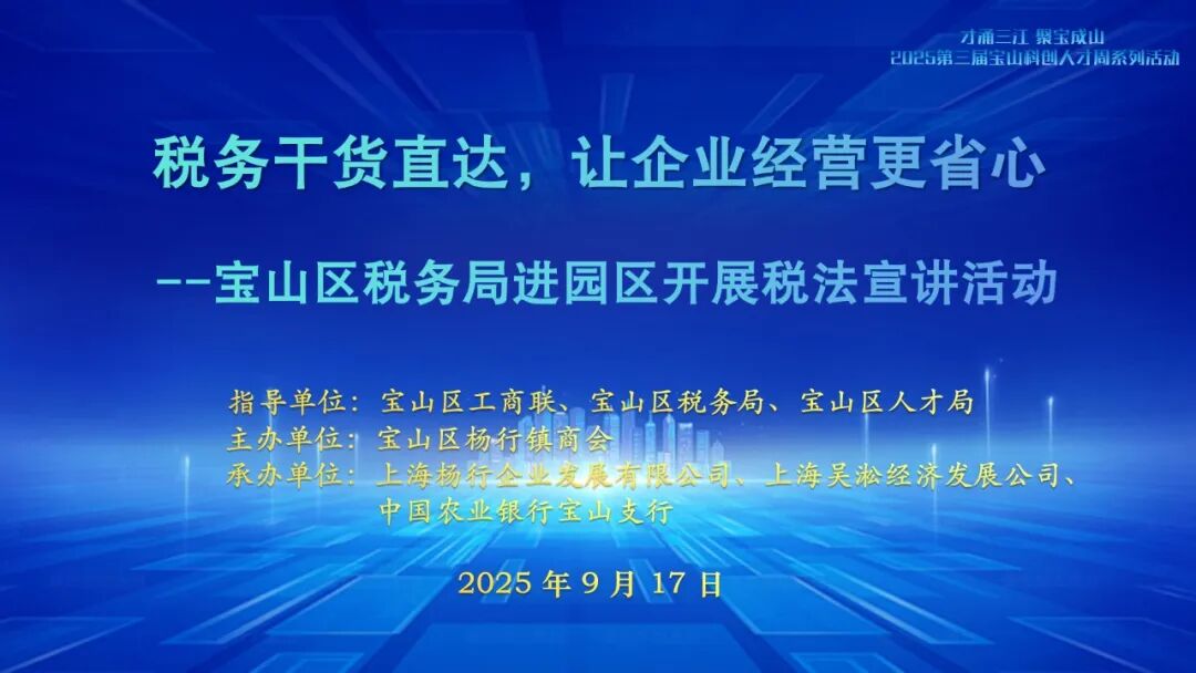 科创人才周|聚焦宝山服务!税法宣讲进园区,干货满满助力企业省心经营 2025-09-24 来源:宝山区人民政府