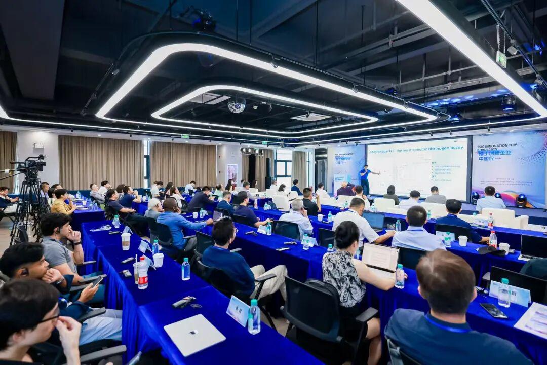 下午的项目路演环节成为活动焦点,11家瑞士企业轮番登场,集中展示了生物医药、AI与智能制造领域的前沿技术成果,引发了中方企业与投资机构的广泛关注。