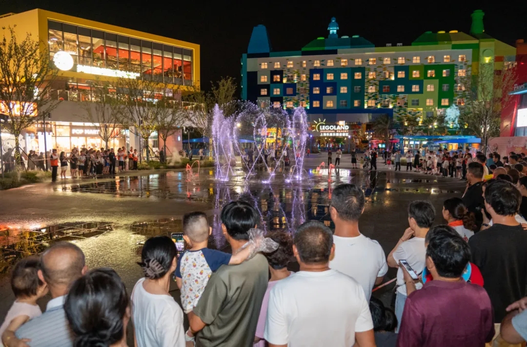 晚上6点半,嘉宾共同启动点亮仪式,光影节正式拉开帷幕,音乐喷泉同步开启,水柱随动感旋律起伏舞动,与灯光交织成绚丽光幕。