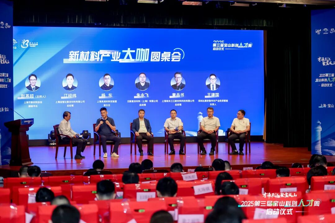 在随后举行的新材料产业大咖圆桌会上,来自上海市新材料协会、上海金智达复合材料有限公司、上海吴淞材料实验室、云路复合材料有限公司及达晨财智创业投资管理有限公司的行业领袖与投资人,围绕新材料领域科技创新与产业创新等方面展开深度对话与思想碰撞。