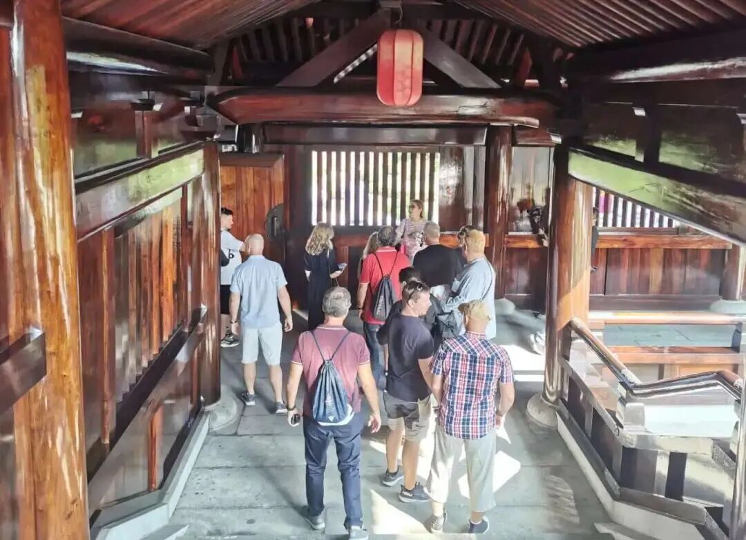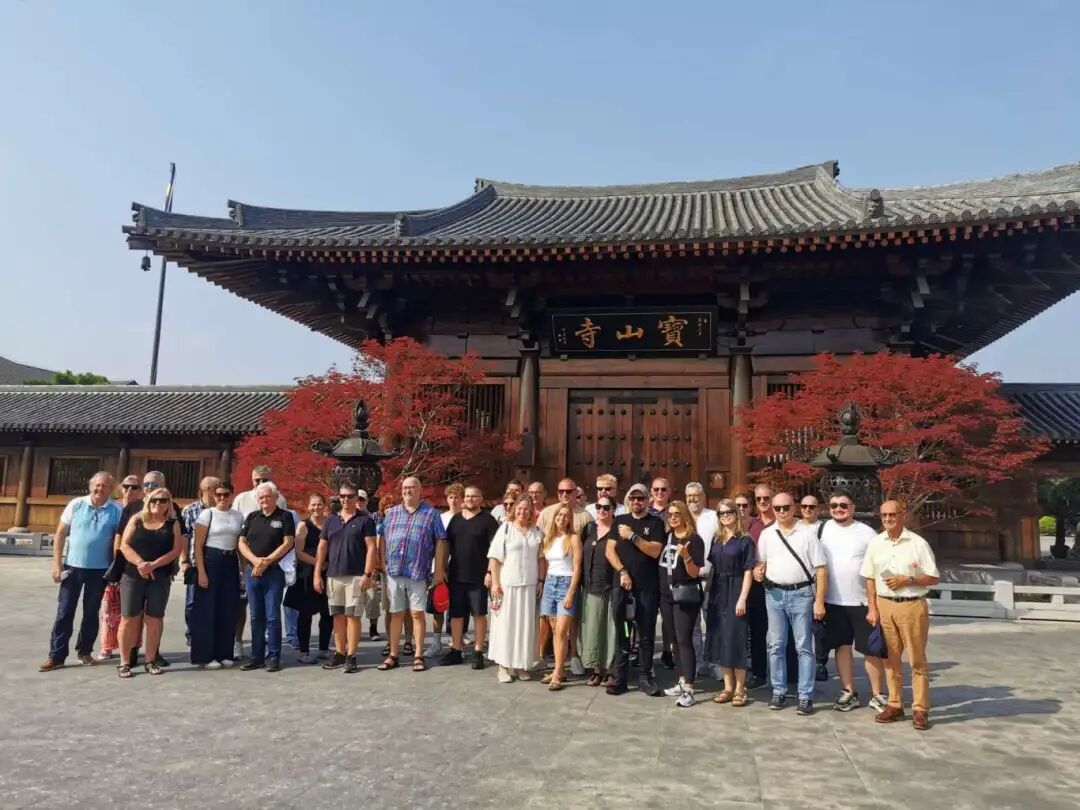 国际友人们乘坐大巴首先来到了宝山寺,这里是古韵悠长的禅意之地。当得知这是一座荣获“鲁班奖”的寺庙时,大家无不赞叹,穿梭在晚唐风格建筑中,看着一件件精雕细琢的工艺品,大家都竖起大拇指,感叹东方文化的精彩绝伦。