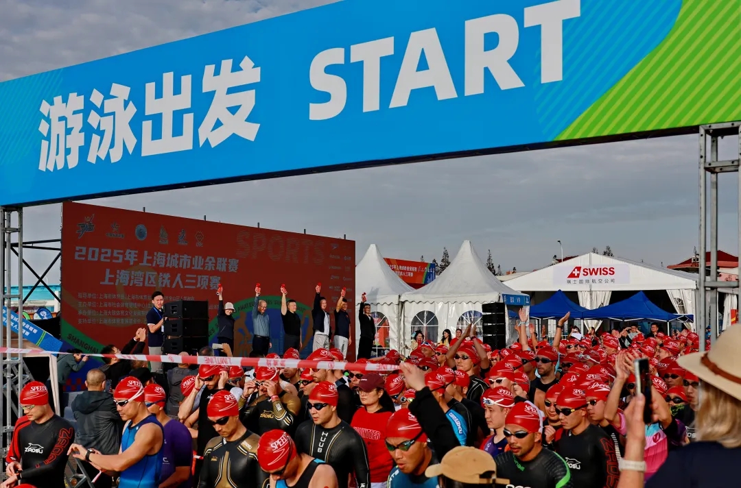 10月19日上午,2025年上海城市业余联赛上海湾区铁人三项赛重磅开赛,1113名选手逐梦金山,在公开水域、沿海赛道、滨海跑道上演专属于“铁人”的速度与激情。