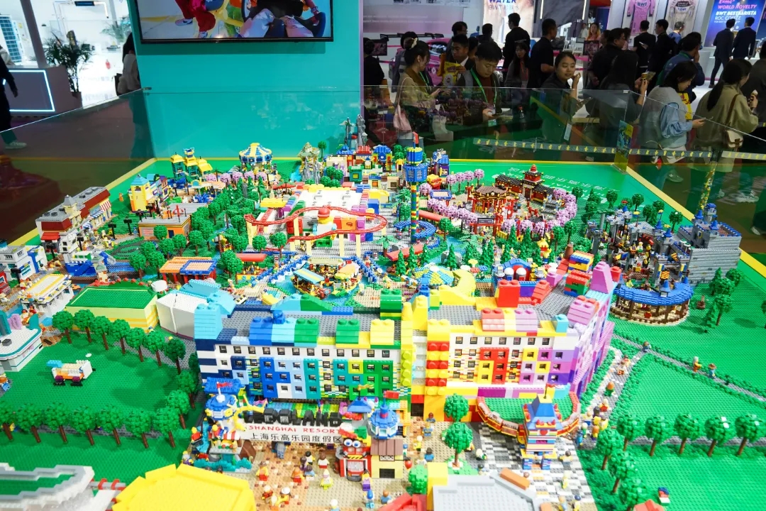 展台前,观展市民排起长龙,大家热情高涨,想要一睹“玩乐之城”的风采。步入展区,就能看到“上海乐高乐园度假区概念设计模型”,它由近10万颗乐高积木搭建而成,包括乐高城市、积木街道等核心特色区域。从奇幻的主题园区到充满想象的游乐体验,观众们在展台中就能“云游”乐园全景,沉浸式感受这座充满想象力的玩乐世界。