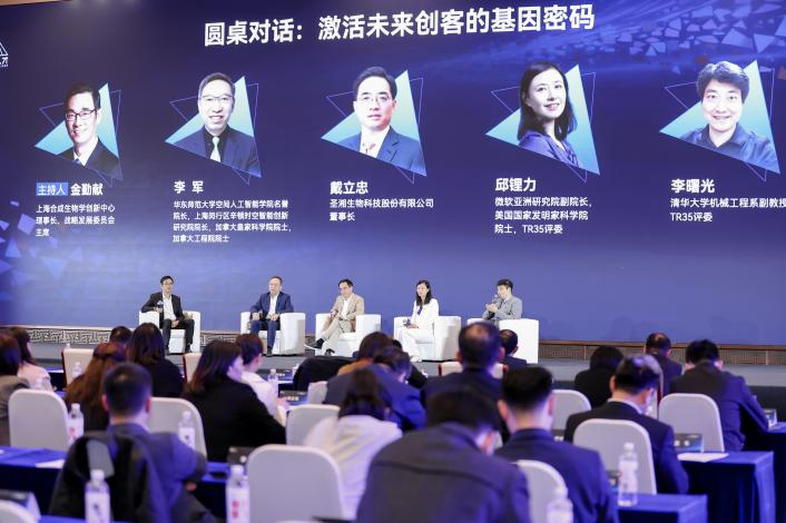 华东师范大学空间人工智能学院名誉院长、辛顿时空智能创新研究院院长、加拿大皇家科学院院士、加拿大工程院院士李军聚焦高校人才培养转型,建议打破“学术优等生”模板,培养敏锐感知需求的“创客”,分享了评价体系调整的前瞻性思考。微软亚洲研究院副院长、美国国家发明家科学院院士、TR35评委邱锂力针对AI应用热潮,鼓励青年人才跳出“卷应用”,勇闯“技术无人区”。清华大学机械工程系副教授、TR35评委李曙光结合实战经验,帮助年轻创客将“科学语言”转化为市场“价值语言”,分享硬科技项目商业爆发力挖掘思路。圣湘生物科技股份有限公司董事长戴立忠则聚焦产业落地挑战,探讨了外部“核心服务基因”及科学家向企业家的思维跃迁。作为此次圆桌对话的主持人,上海合成生物学创新中心理事长、战略发展委员会主席金勤献在总结时鼓励创客们不被过去定义,敢于重组知识结构,主动“合成”想要的未来。