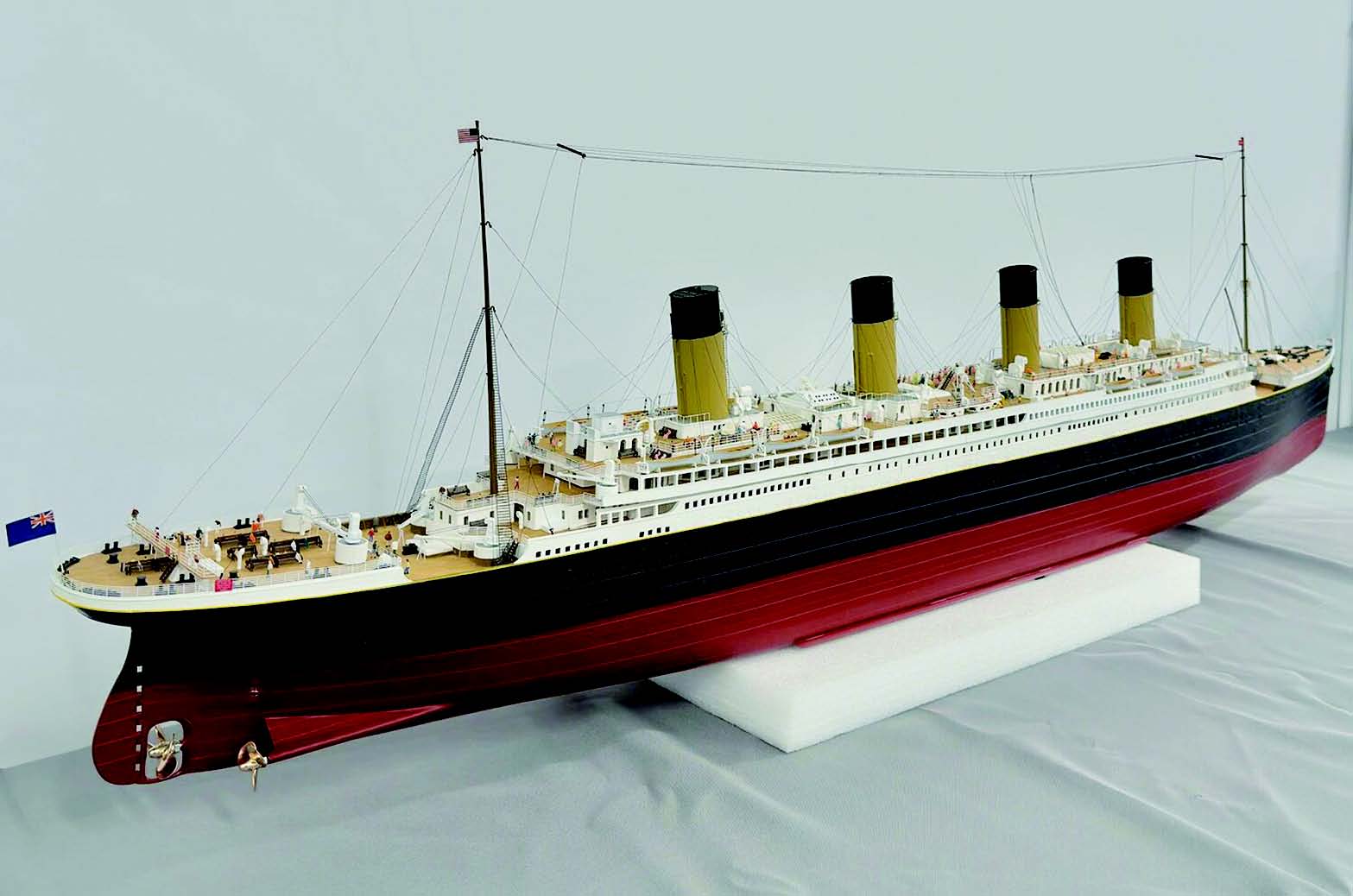 其中,经典邮轮“泰坦尼克号”的精细模型吸引了众多目光,深受亲子家庭的喜爱(见右下图)。该模型复现了“泰坦尼克号”标志性的黑、白、红经典配色,甲板上的救生艇、信号塔上的微缩灯饰,乃至客舱窗户的布局皆清晰可辨,让一段跨越世纪的传奇故事跃然眼前。