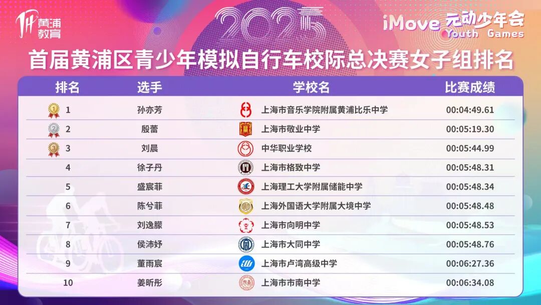 虚拟自行车女子组冠军、来自上海音乐学院附属黄浦比乐中学高一四班的孙亦芳,心中满是激动与感慨:“我们学校一直非常重视体育教育,‘每天锻炼2小时’的体育活动从未间断,这让我拥有了扎实的体能基础和良好的骑行状态,为比赛胜利打下了坚实根基。此前的赛事让我在挑战中突破自我,也让我明白,自行车比赛不仅是体力与速度的较量,更是对意志品质和战术策略的全方位考验。”