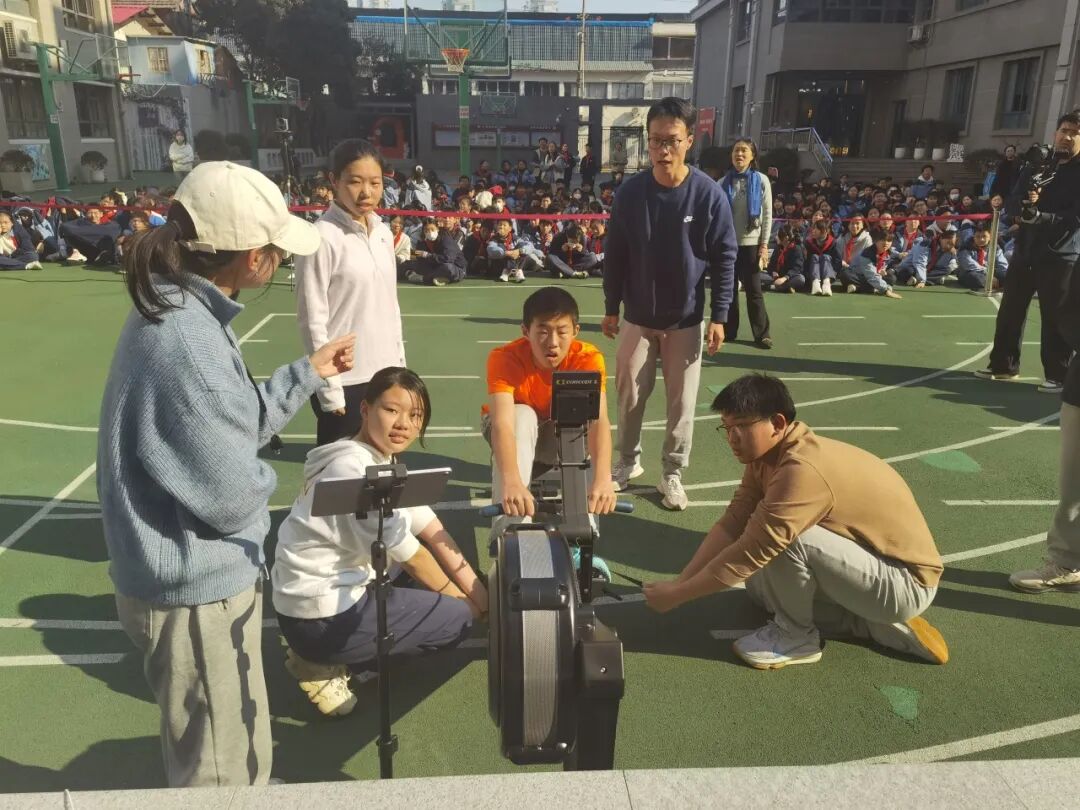 直播画面中,各校选手在虚拟赛道上奋力划桨、全力骑行,身旁是同校师生的加油助威;屏幕一侧,实时跳动的排行榜展示着所有学校的名次变化,竞争态势一目了然。