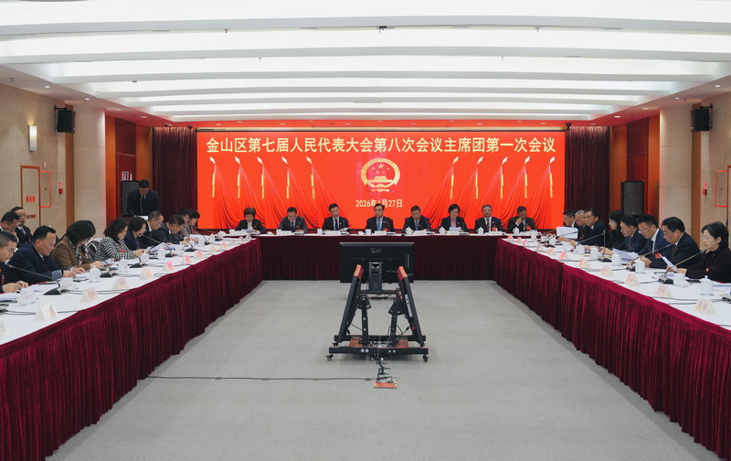 1月27日下午,金山区第七届人民代表大会第八次会议主席团举行第一次会议。会议由区人大常委会主任王宏伟主持。
