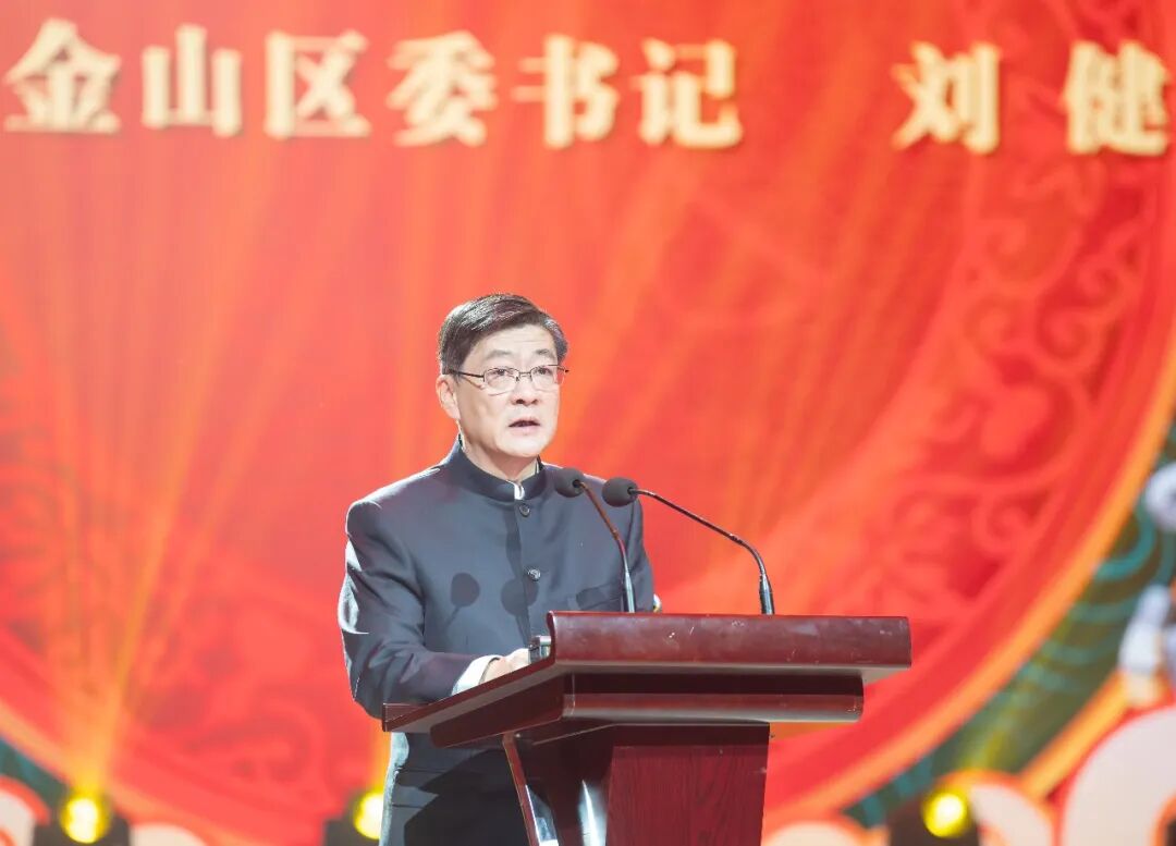 刘健在致辞中,代表区委、区人大常委会、区人民政府和区政协,向全区人民、驻金部队官兵、社会各界人士,致以诚挚的问候和美好的祝愿,向工作在各个条线、各个领域、各个行业的金山奋斗者们,致以崇高的敬意。