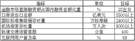 ——城市综合服务功能明显增强。加快形成多元化金融市场和金融机构体系,金融发展环境进一步完善,在进一步巩固国内金融中心地位的基础上,成为具有国际影响的金融中心之一。基本建成洋山深水枢纽港和上海航空枢纽港。形成内外贸一体、货物贸易和服务贸易并举的发展格局。通过国际金融、航运、贸易中心互动融合,经济中心城市的集聚辐射功能显著增强。
