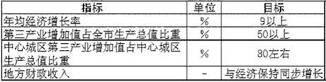 ——经济保持持续较快健康发展。在优化结构、提高效益和降低消耗的基础上,全市年均经济增长率预期为9%以上,到2010年全市生产总值达到1.5万亿元,逐步形成服务经济为主的产业结构,地方财政收入与国民经济保持同步增长。