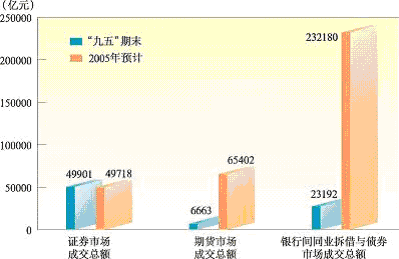 政府、企业、市场、社会综合配套改革深入推进。国有控股公司和大企业集团改革重组取得重要进展,初步形成国有资产管理、营运、监督体系。非公经济发展环境不断改善,在国民经济中的作用不断增强。证券、期货市场稳步发展,外汇、债券、钻石、黄金、产权、土地等要素市场加快发展(见图1-5)。政府职能进一步转变,市、区(县)政府机构改革和财税管理体制改革基本完成,认真贯彻《行政许可法》,完成行政许可和审批事项规范清理,率先在全国推出政府信息公开制度。初步构建起社会诚信体系框架。行业协会和中介机构加快发展。整顿和规范市场经济秩序取得成效。