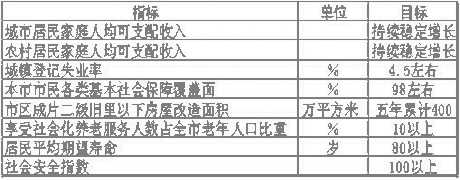 ——人民生活质量进一步提高。城乡居民家庭人均可支配收入持续稳定增长,城镇登记失业率控制在4.5%左右,实现各类社会保障基本全覆盖。居民普遍享有便利的基本医疗和公共卫生服务。人民群众文化生活更加丰富,市民素质和文明程度普遍提高,城市公共安全保障有力。