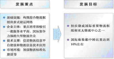 重点发展物流业。围绕国际航运中心建设,依托深水港、航空港及铁路、公路网络,促进国际中转物流发展,拓展航运服务产业链。积极培育现代物流服务市场,构建口岸物流、制造业物流和城市配送物流相结合的现代物流体系。完善深水港、外高桥、浦东空港和西北综合物流园区等物流基地的服务功能。促进物流技术的标准化和物流信息化应用。(见图5-2)。
