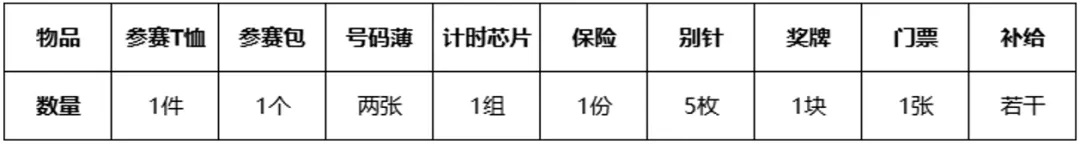 ②完赛奖牌。所有选手在规定时间内完赛将获得奖牌一枚、完赛补给一份;