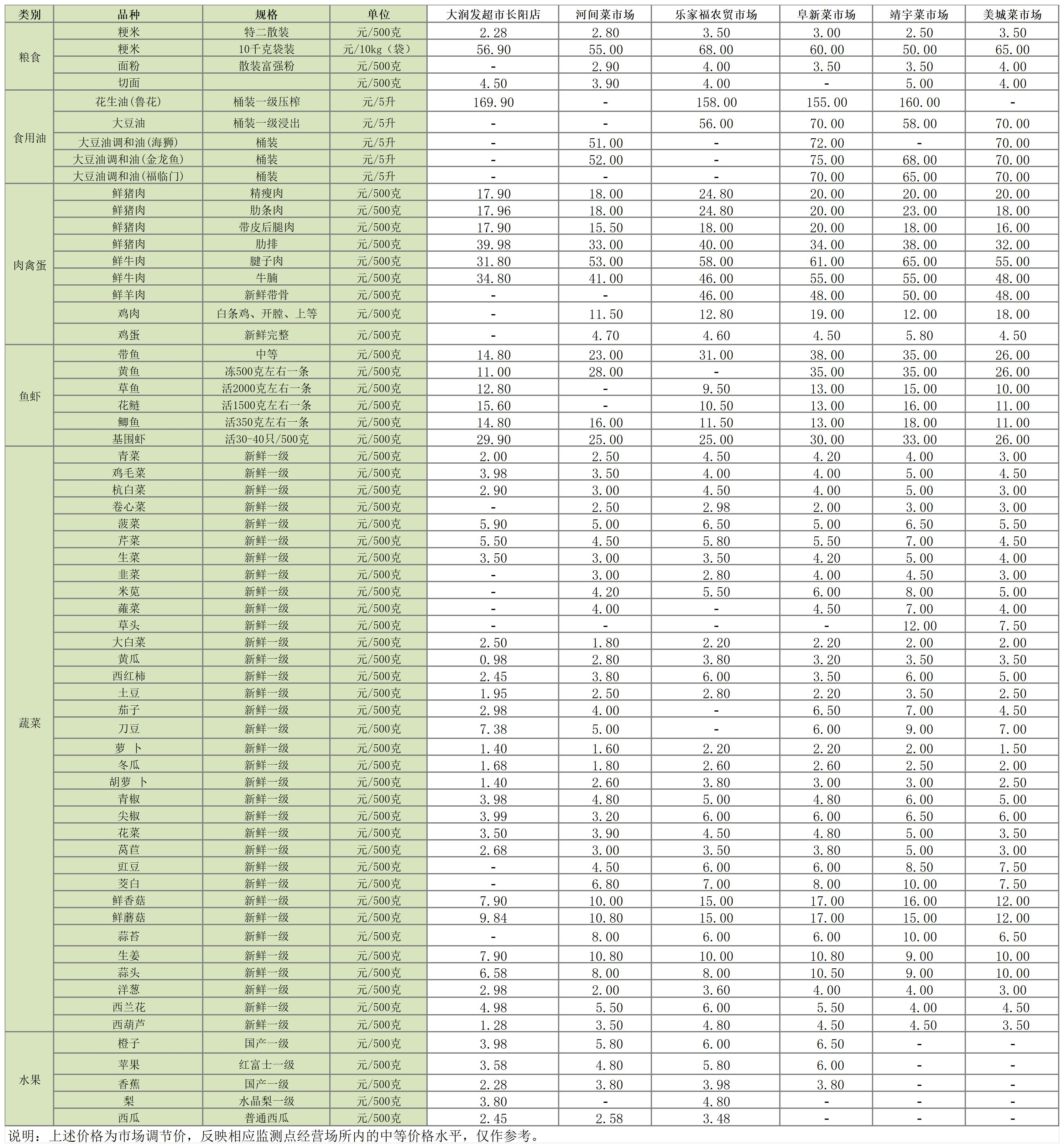 主副食品价格信息