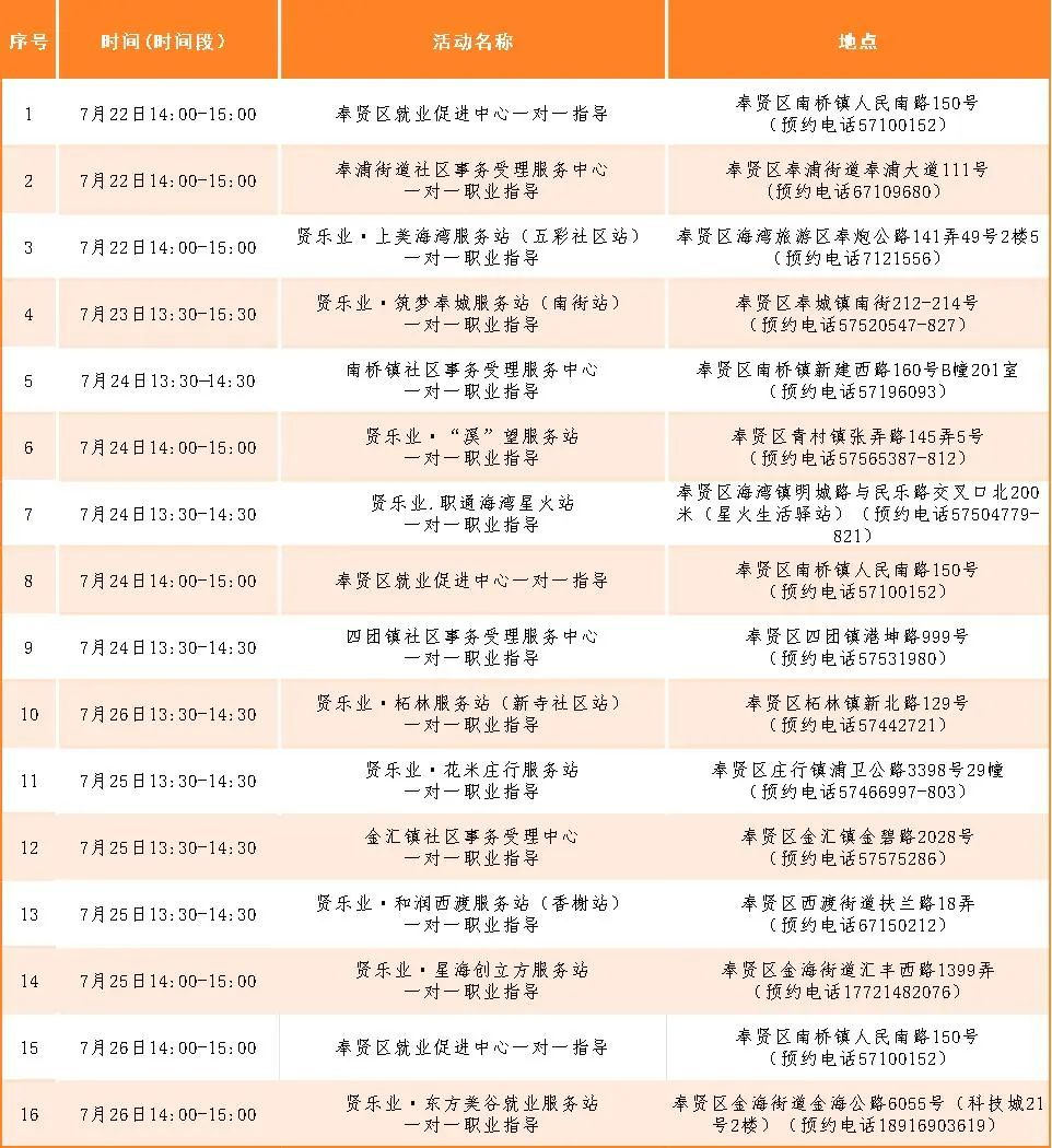 为助力重点群体实现就业,奉贤区“15分钟就业服务圈”服务站点各类活动安排新鲜出炉,为你的就业创业之路暖心护航。下周活动抢先知,精彩别错过~