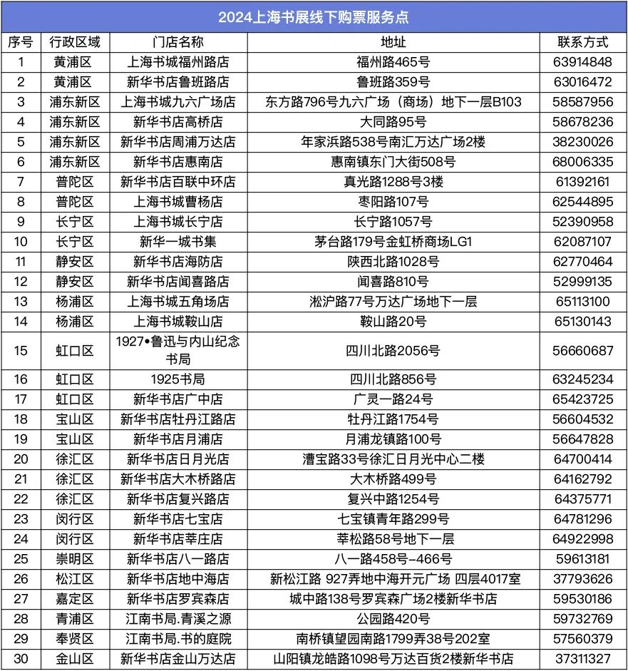 三是门票预售期间的线下服务。为进一步方便中老年读者购票,将通过本市30家新华书店门店设置线下购票服务网点。读者凭身份证由现场工作人员协助进行购票。今天我们也将发布具体线下购票服务网点信息。