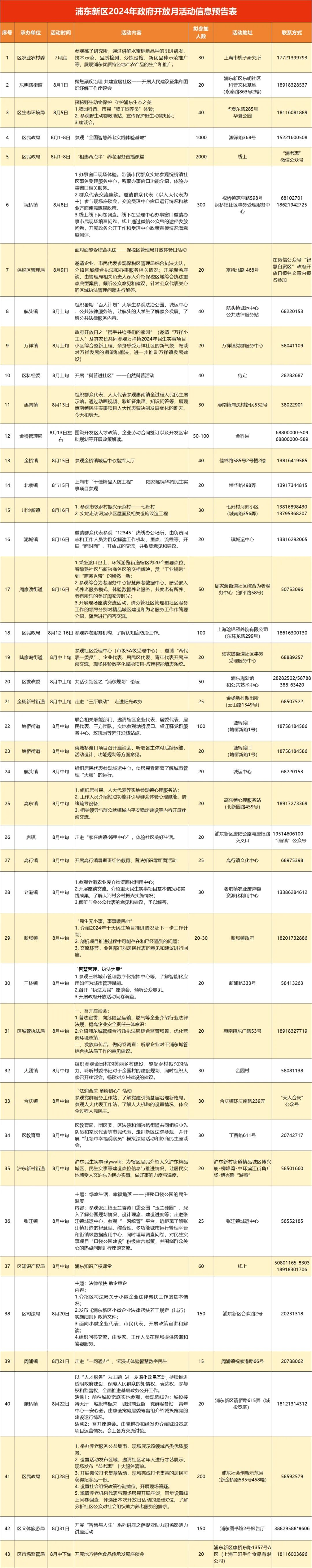 为进一步增强政民互动,打造阳光、透明、开放、服务型政府,以更高质量政务公开服务本区全力打造社会主义现代化建设引领区,8月浦东将集中组织开展以民心工程、实事项目等为主要内容的线上线下开放活动,欢迎广大市民朋友报名参与。活动内容详见↓