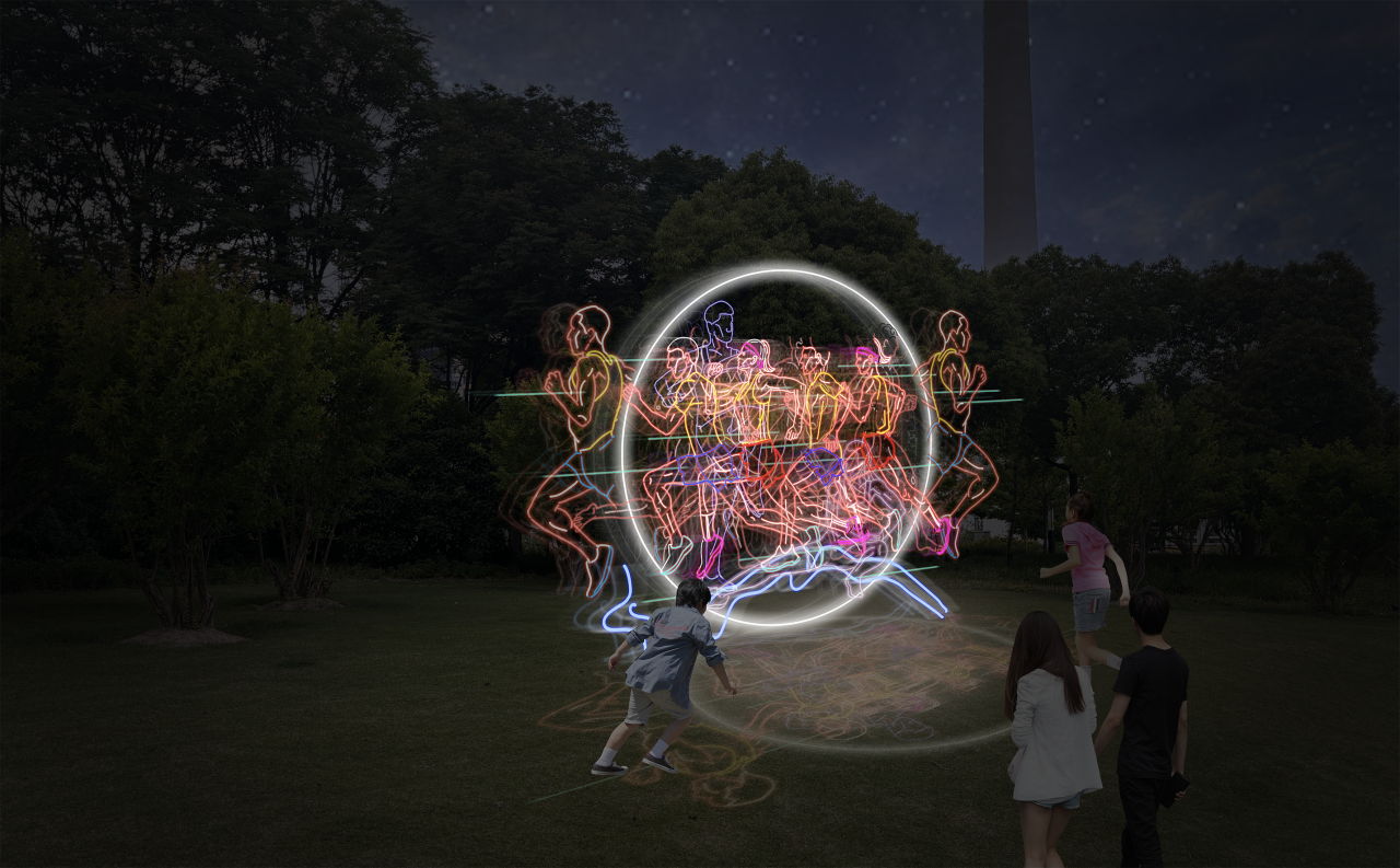 一系列动态光影装置将展现苏河半马的运动路线和运动员从热身到奔跑的身影,以及伴随着人们在光影设备上运动,光柱攀登到顶峰的过程,用光影变化彰显苏河半马的运动活力。