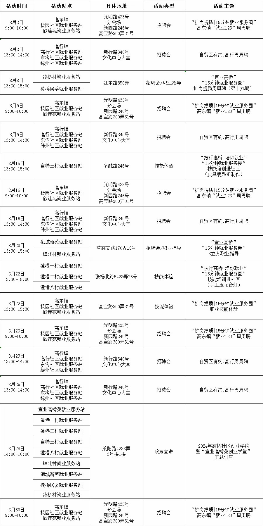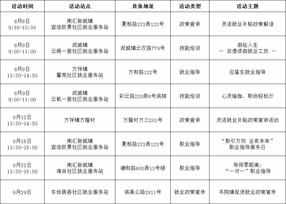 活动地点:枣阳社区就业服务站(枣阳路251弄100号)
