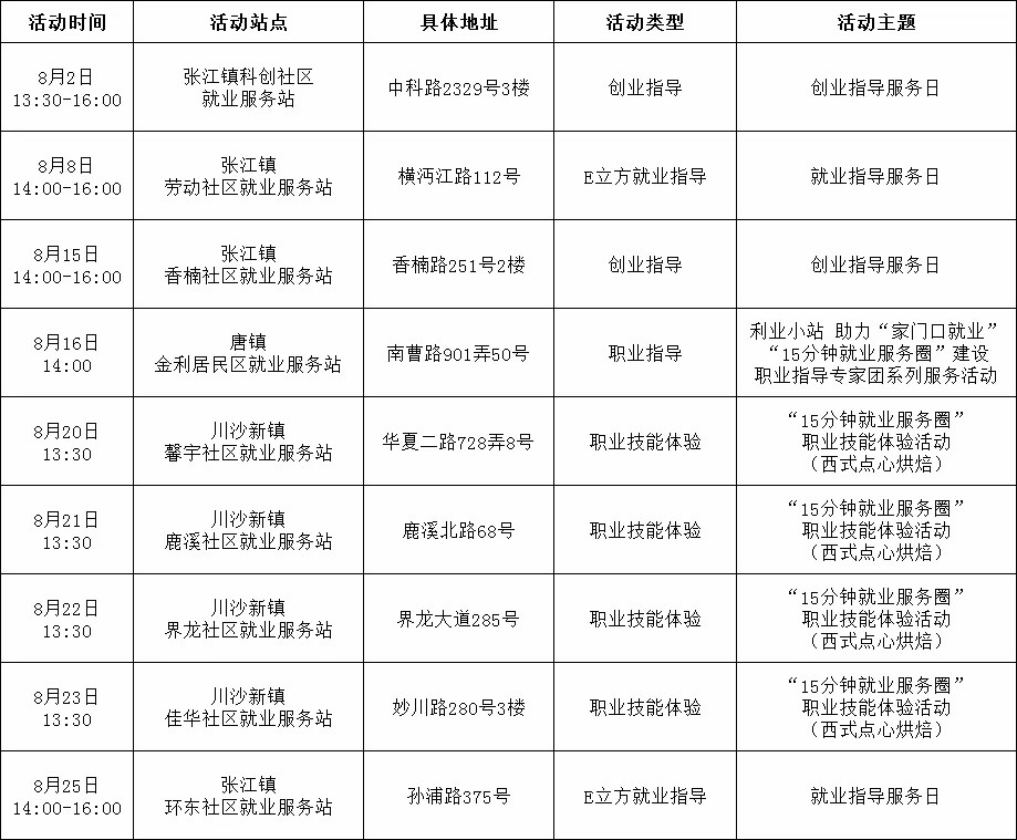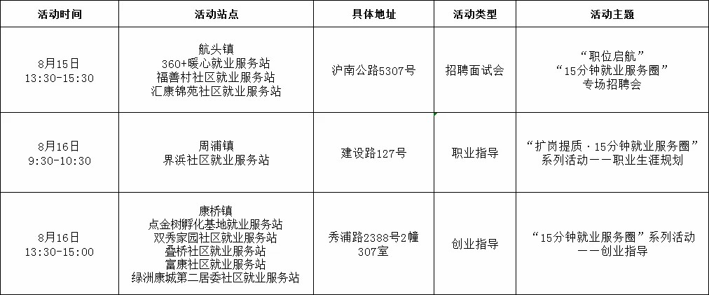 “15分钟就业服务圈”社区就业服务站点建设市政府实事项目作为人社部门常态化政府开放活动之一,我们将持续发布精彩服务内容,今天为大家带来浦东、普陀、崇明3区近期就业活动安排!