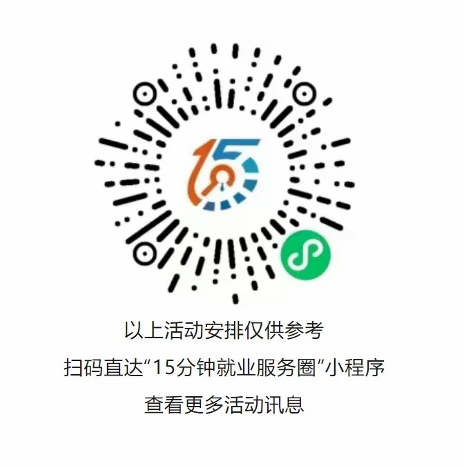 以上活动安排以实际举办为准,扫码直达浦东新区“15分钟就业服务圈”小程序查看更多活动咨询