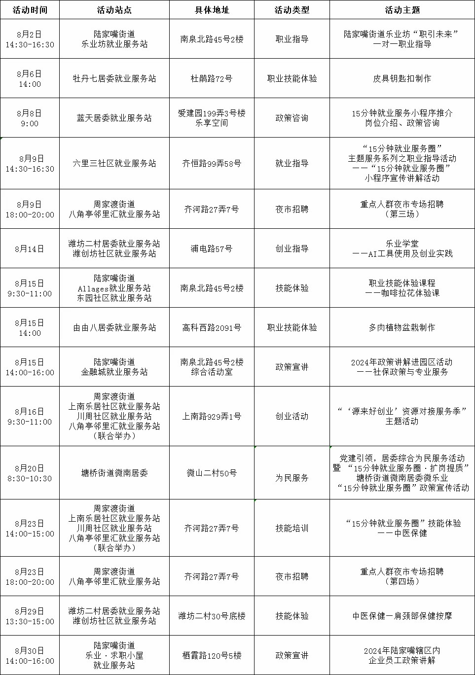 活动地点:曹杨社区就业服务站(杏山路317号)