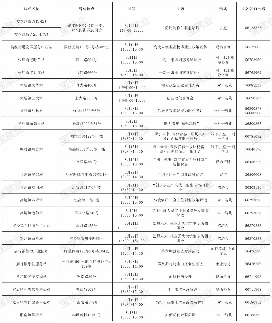 活动具体时间及地点,关注“长宁就业”公众号或可直接联系站点就业人服务工作人员咨询哦