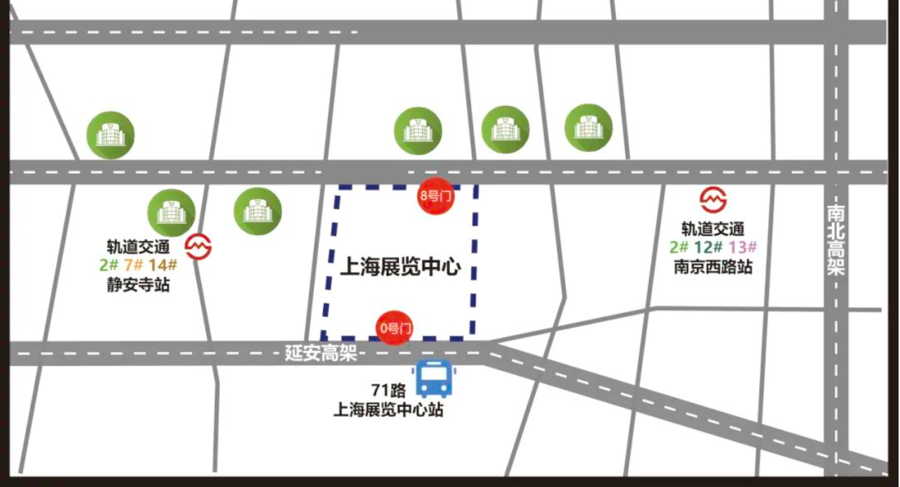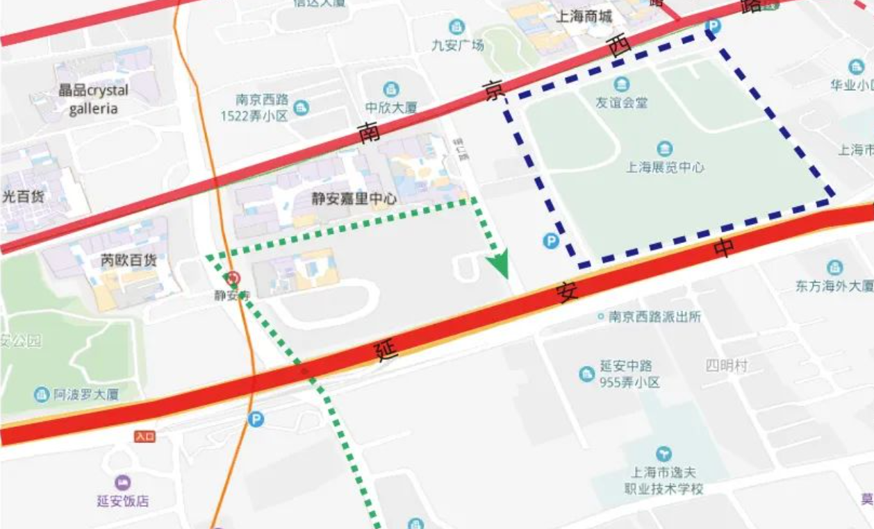 市民群众可搭乘轨道交通2、7、14号线至静安寺站出站后步行至展馆。