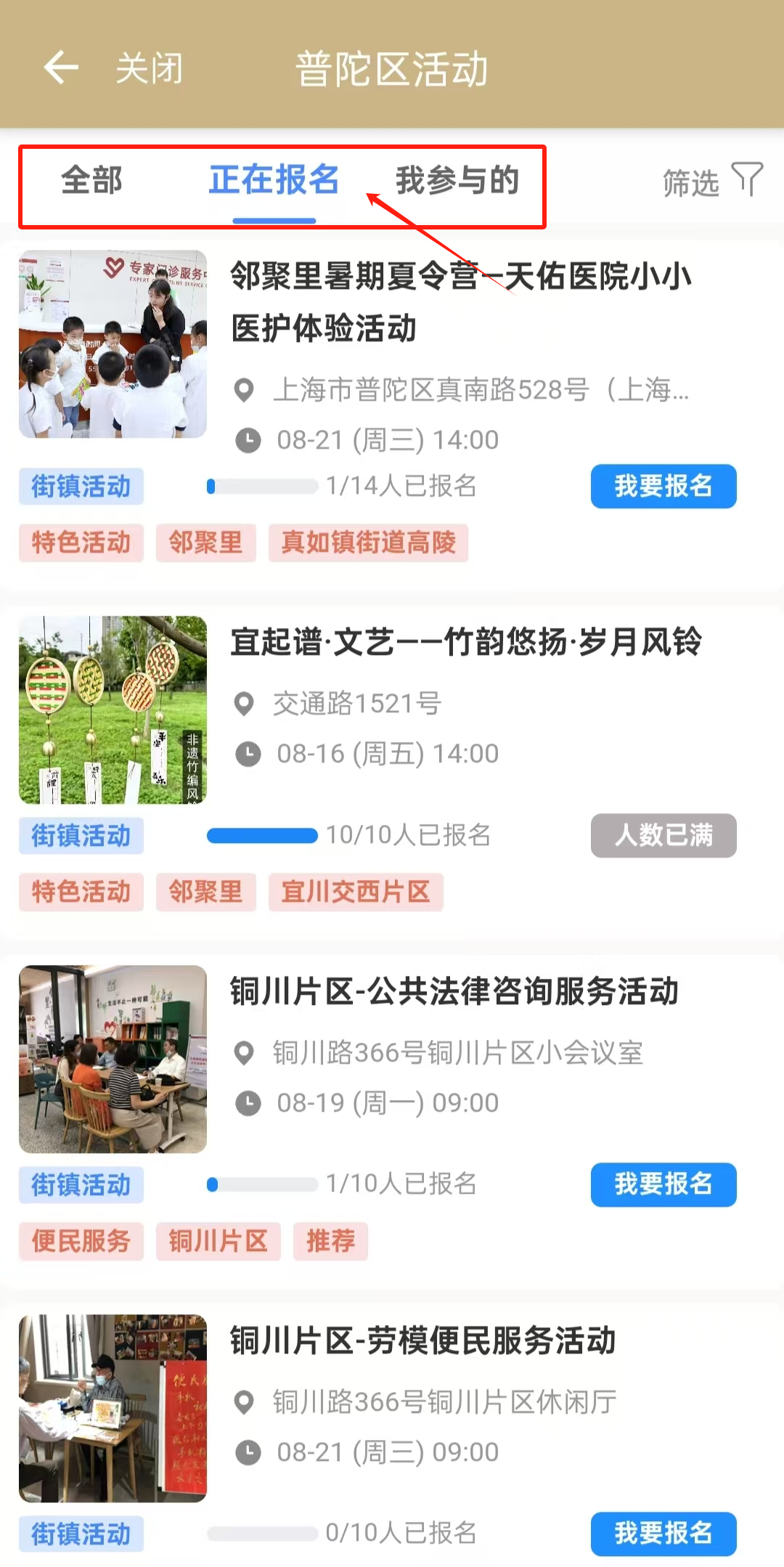 如果你还想浏览更多活动及活动具体信息,可以登录“随申办”普陀旗舰店哦。具体操作步骤如下。