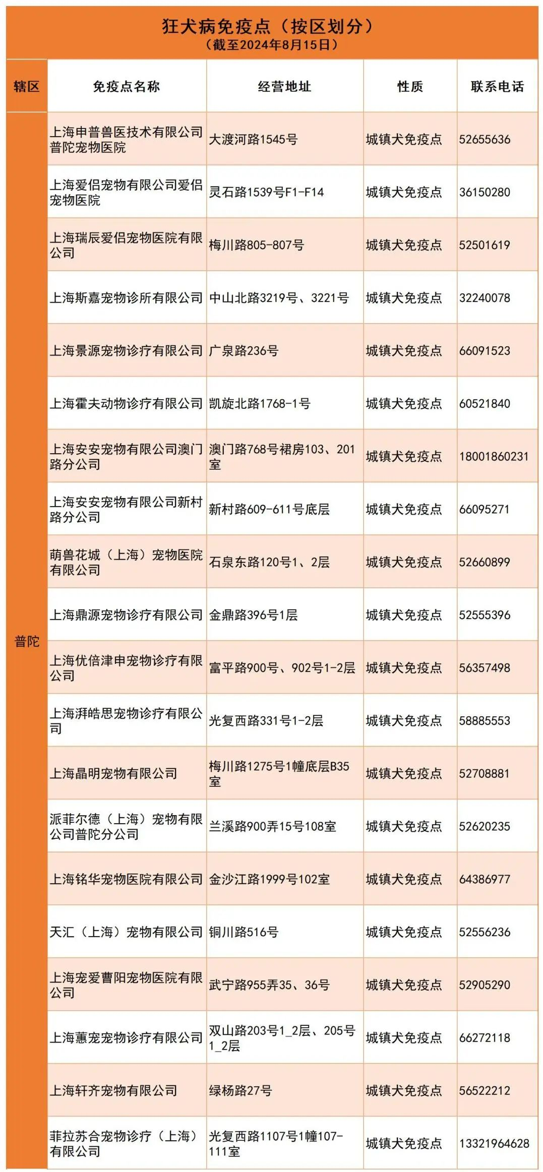 市农业农村委介绍,狂犬病是人畜共患的传染病,为爱宠注射狂犬疫苗,是保护它,也是保护你。根据《上海市动物防疫条例》《上海市养犬管理条例》等法律法规精神,市农业农村委相关部门持续推进本市狂犬病强制免疫工作。本市当前认定(指定)412个动物狂犬病免疫点,普陀区有这些!快收藏吧~