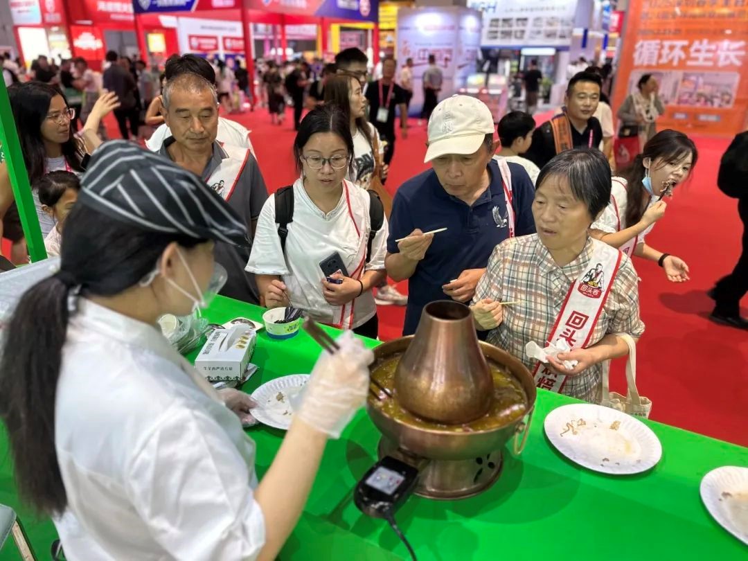 在餐饮食材展区,青岛的金荣泰食品公司备受瞩目,他们精心布置了铜锅与烤盘,为观众演示涮肉、烤牛排及煎鸡翅的过程,并组织免费试吃。香气既出,展位前便顷刻排起长队。“此次参展,我们特别带来原切牛羊肉、纯肉烤肠,以及今年全新推出的‘贵妃翅’,口味丰富多样,深受顾客喜爱。”金荣泰食品的创始人仇旭政介绍道。